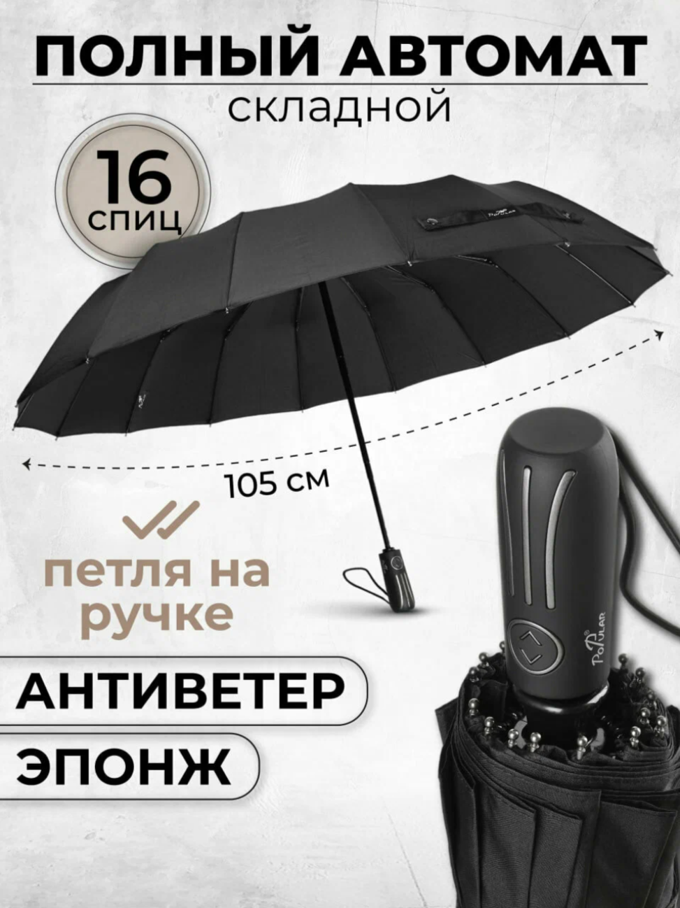 Ниже Вы можете прочитать отзывы на Мужской зонт автомат 16 спиц 2021 Black, ознакомится с подробными характеристиками, посмотреть интересные обзоры и фотографии на Мужской зонт автомат 16 спиц 2021 Black.