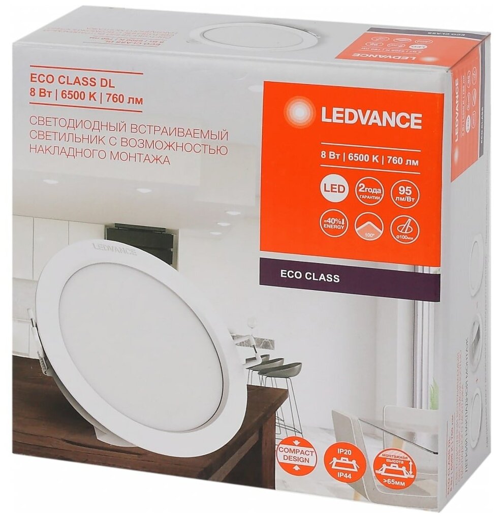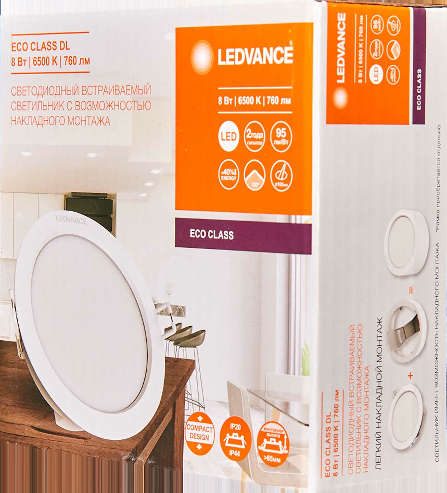 Светильник встраиваемый светодиодный белый 8 Вт 6500 К IP20 Ledvance Ecoclass DL8W (4058075656635) интересное:
