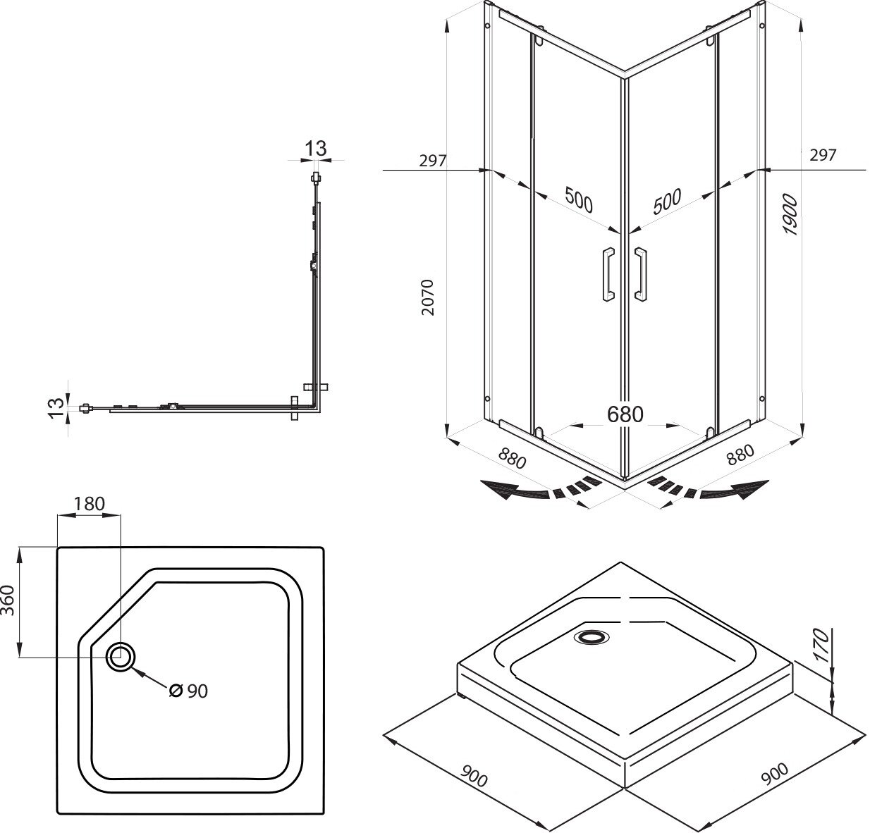 Душевой уголок Triton Каппа-Хром 90x90, квадратная интересное: