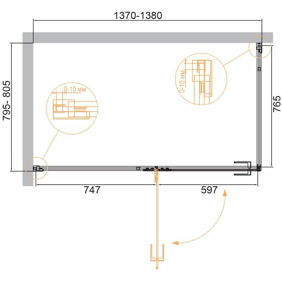 Душевой уголок CEZARES BELLAGIO-AH-1-140/80-C-NERO