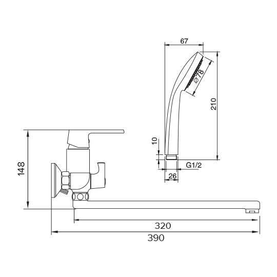 Смеситель для ванны Osgard 83223 Dalalven Смеситель для ванны однорычажный, с длинным изливом и душевым гарнитуром, хром