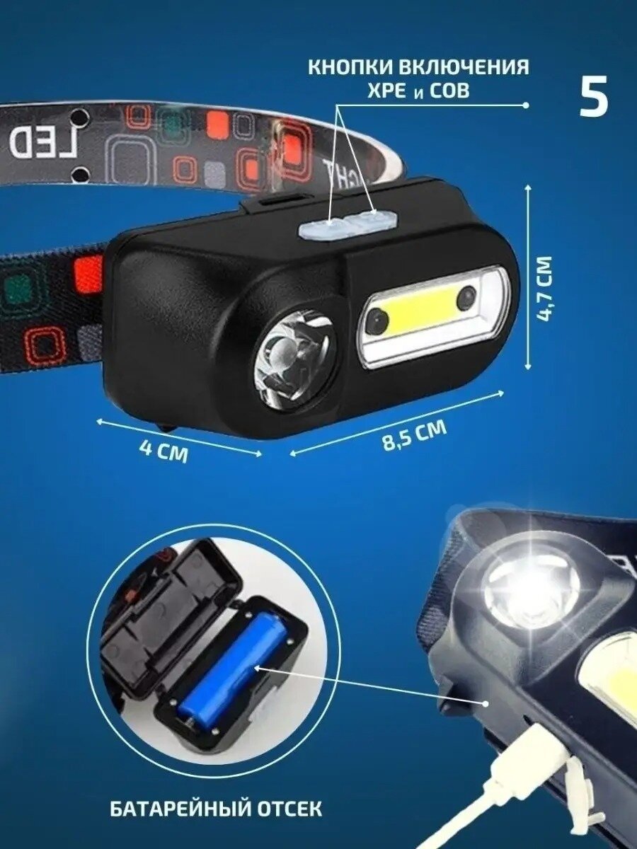 Купить Фонарь налобный сверхяркий светодиодный мощный LED usb