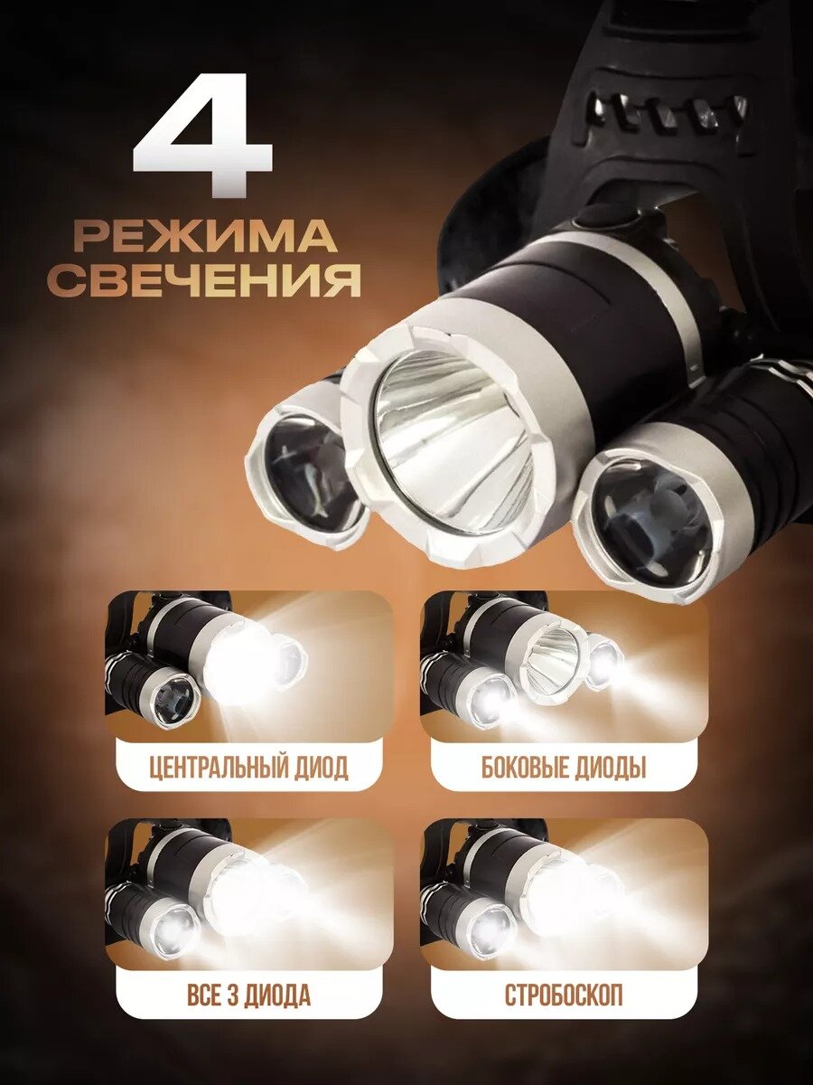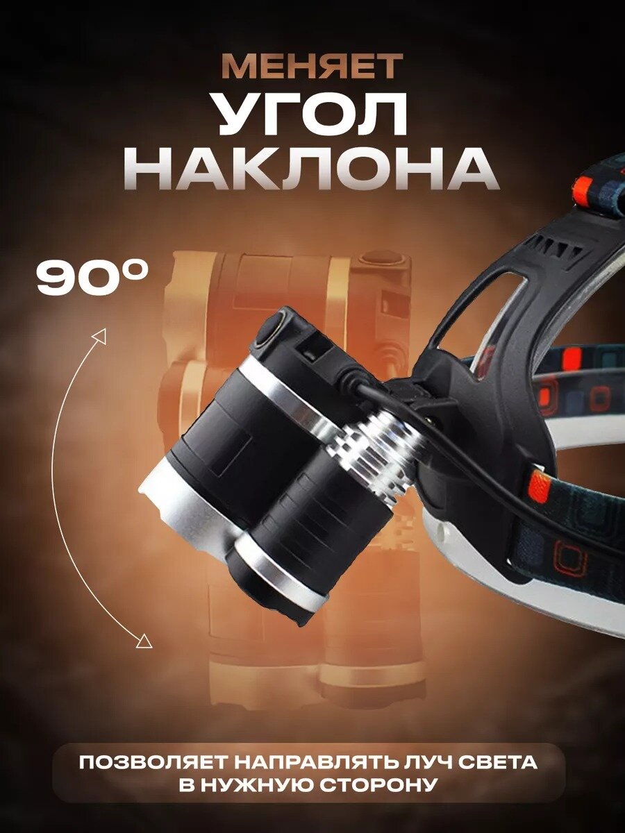 Купить Сверхяркий популярнейший налобный фонарь аккумуляторный с тремя интегрированными фонарями и регулировкой угла аккумуляторный