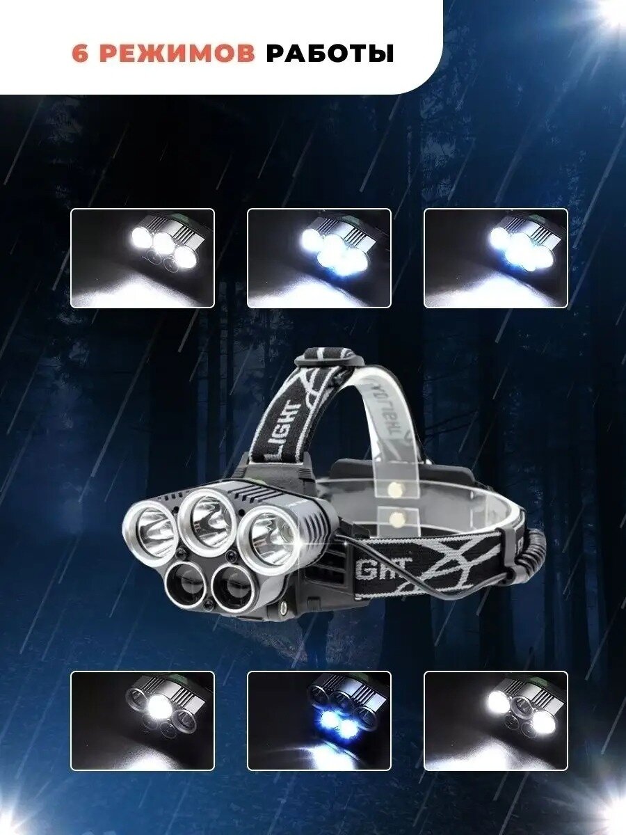 Фонарь налобный сверхяркий светодиодный мощный LED usb