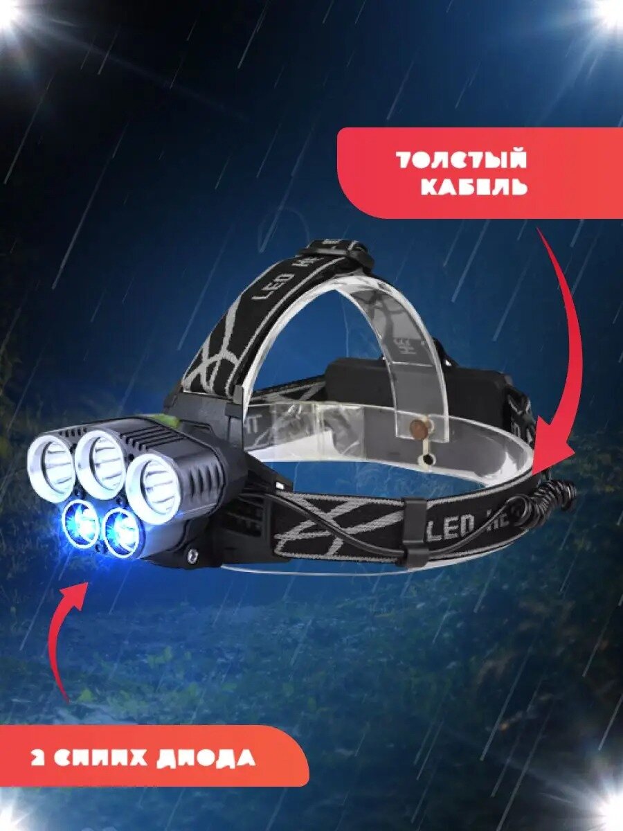Сверхяркий популярнейший налобный фонарь аккумуляторный с тремя интегрированными фонарями и регулировкой угла аккумуляторный