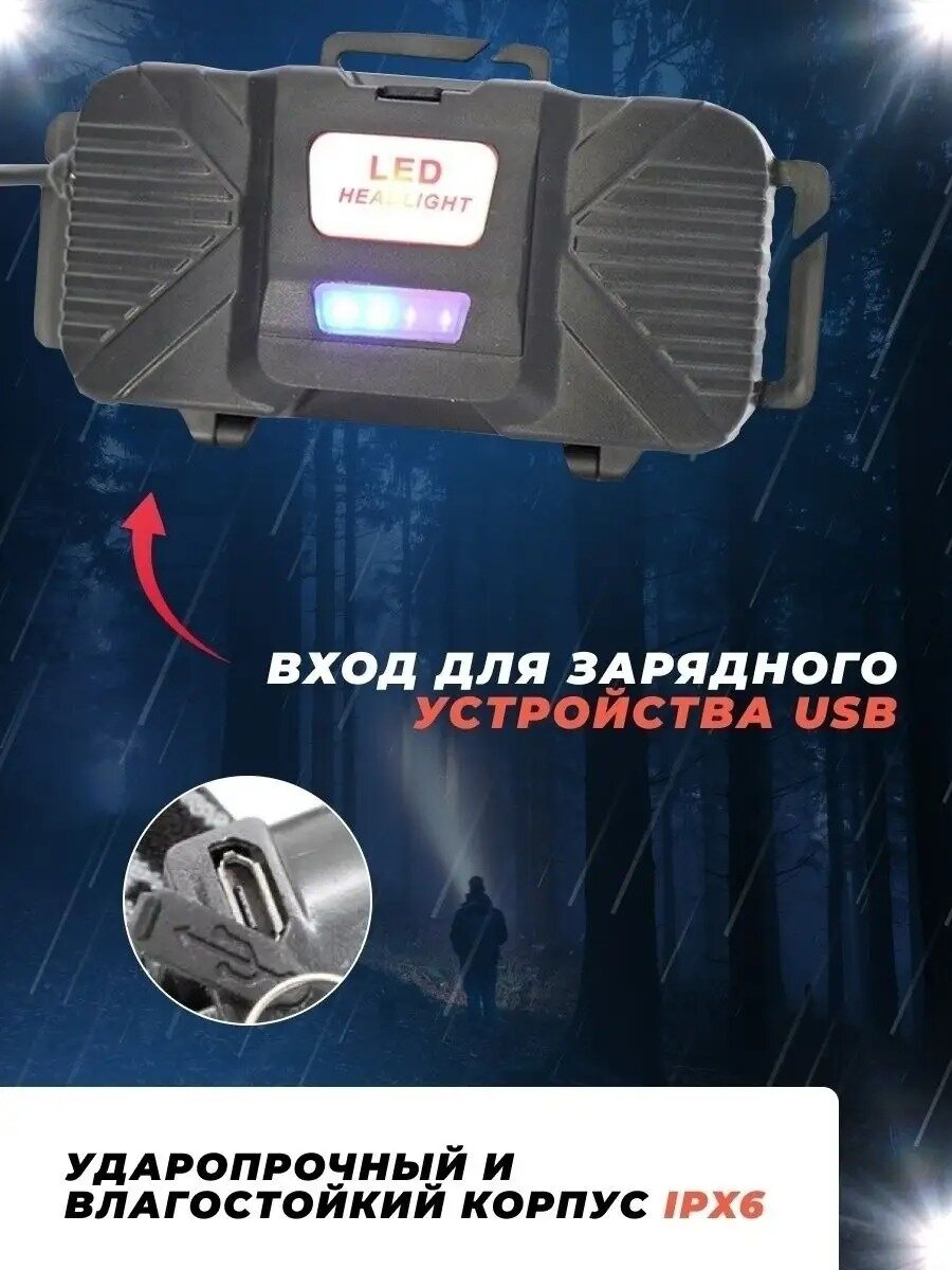 Фонарь налобный аккумуляторный светодиодный мощный LED usb