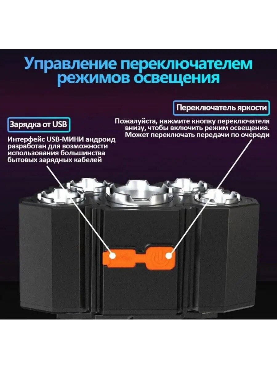 Сверхяркий популярнейший налобный фонарь аккумуляторный с тремя интегрированными фонарями и регулировкой угла аккумуляторный