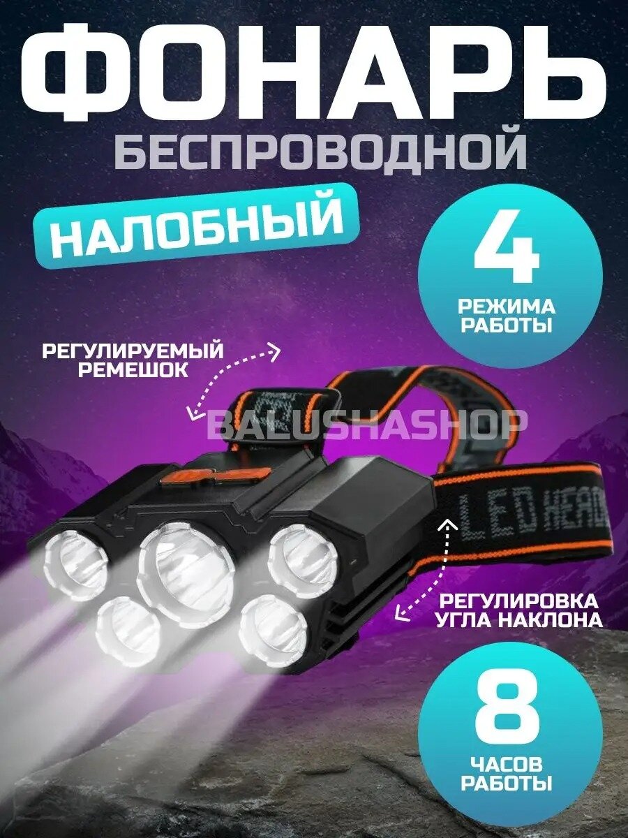 Фонарь налобный аккумуляторный светодиодный мощный LED usb
