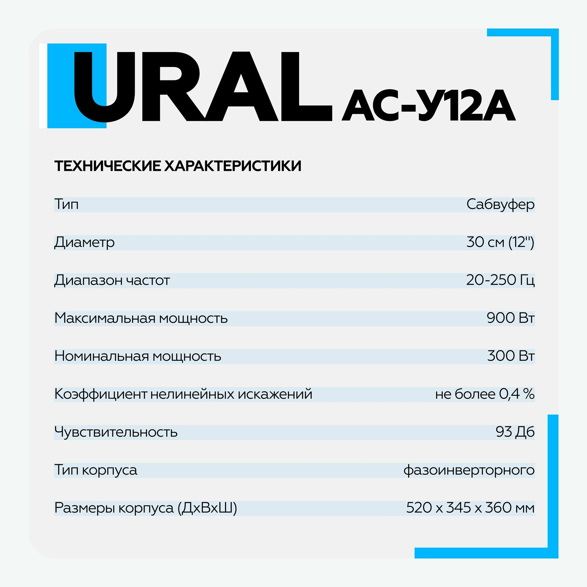 Ниже Вы можете прочитать отзывы на Сабвуфер Ural АС-У12А Черный, ознакомится с подробными характеристиками, посмотреть интересные обзоры и фотографии на Сабвуфер Ural АС-У12А Черный.