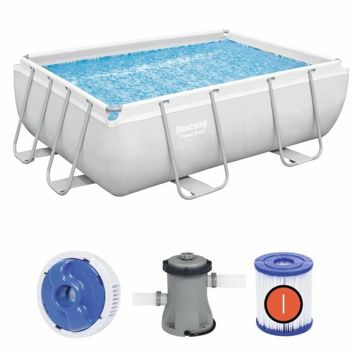 Каркасный бассейн Power Steel, прямоугольный, 282х196х84 см + фильтр-насос 220 В, BESTWAY (56629)