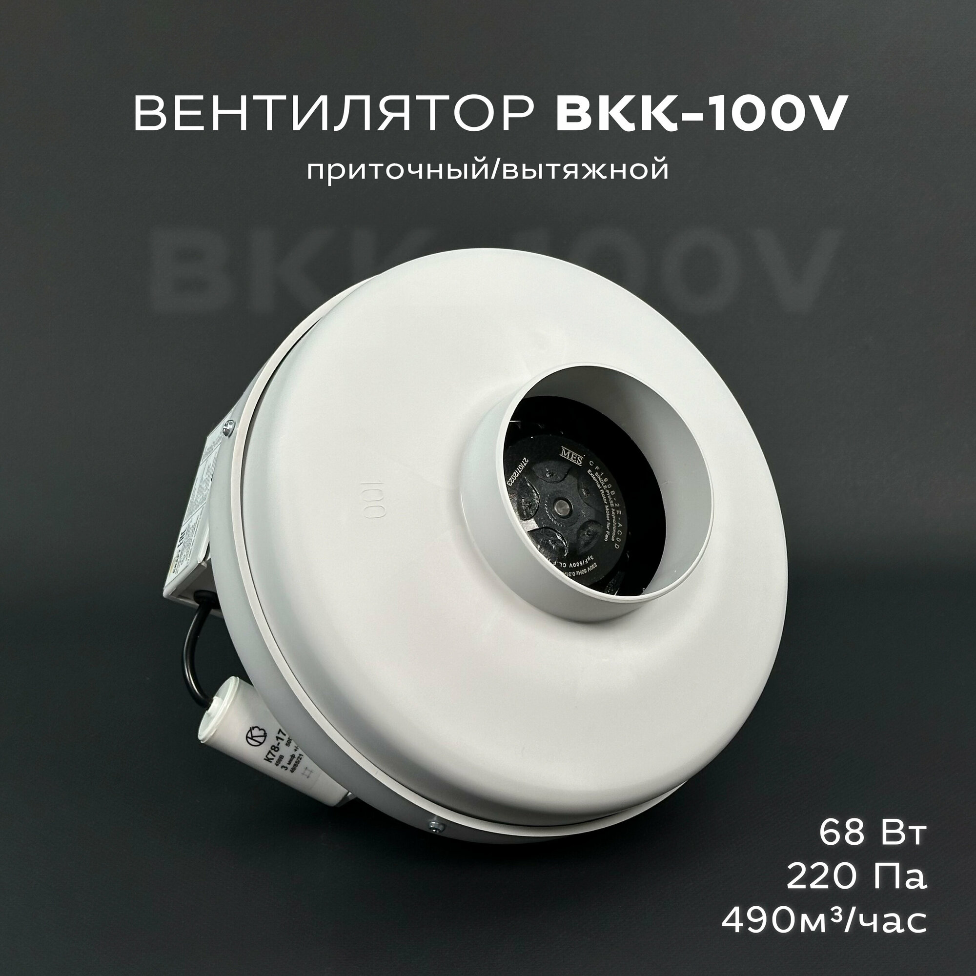 Вентилятор канальный круглый ВКК-100 V, 220В, 490 м3/час, 220 Па, 70 Вт, IP 54 для круглых воздуховодов диаметром 100 мм, вытяжной или приточный