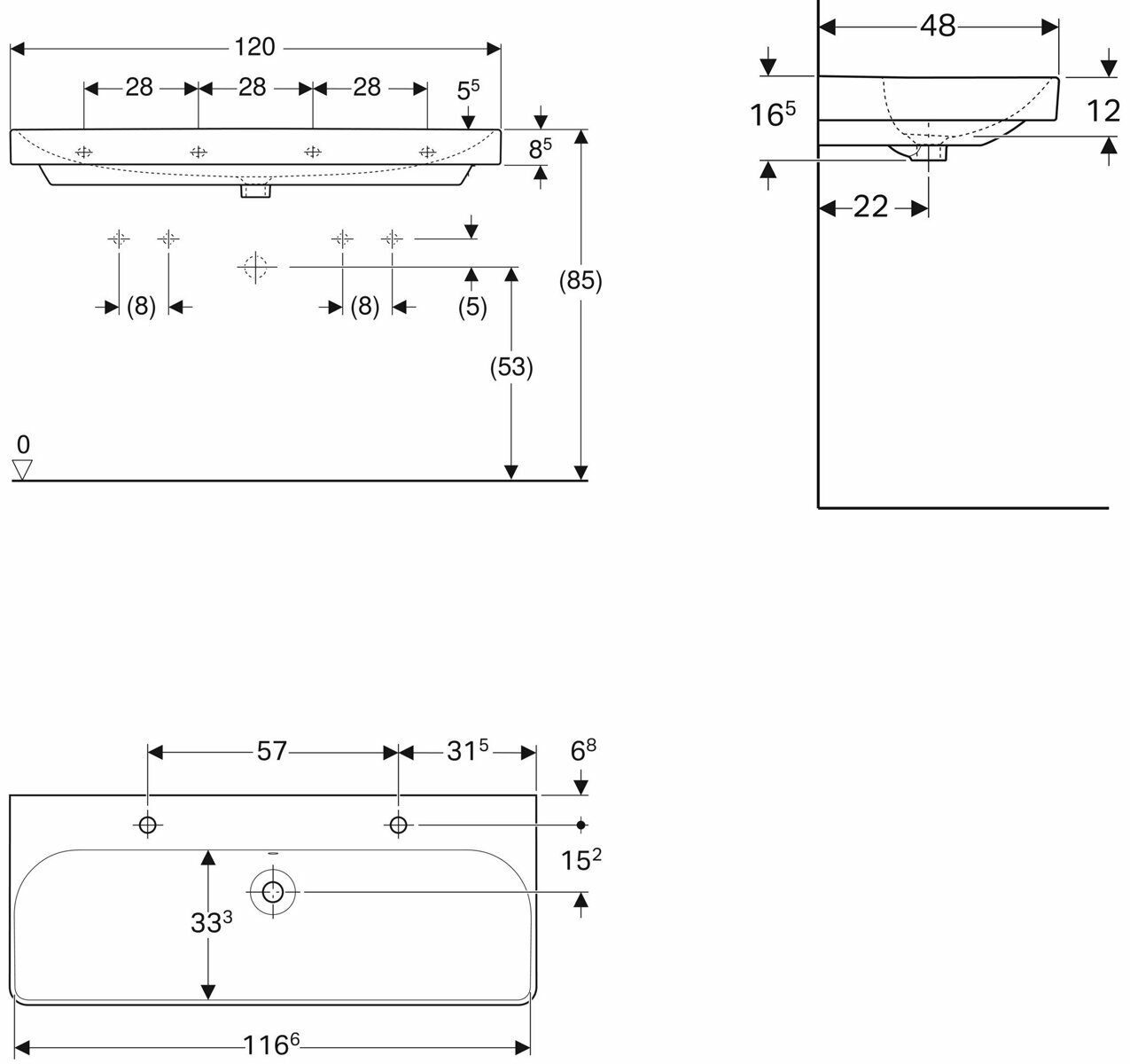 Раковина подвесная Geberit Smyle Square 120x48 500.253.01.1