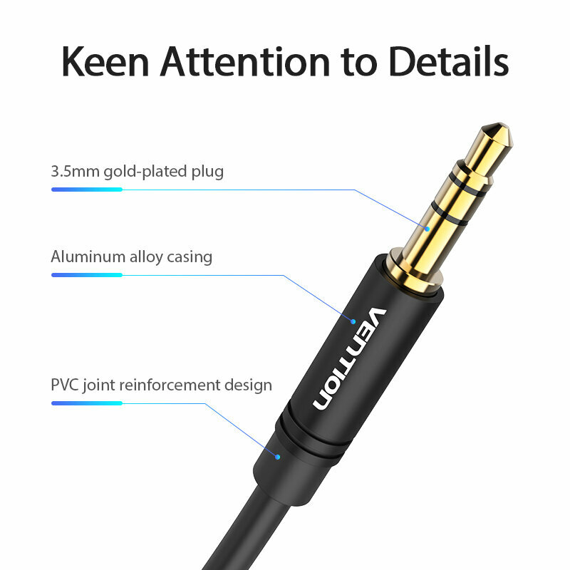 Vention Кабель aux mini -Jack-Jack 3.35 (папа) 1 метр, стерео переходник для гарнитуры и акустических систем к ПК, смартфону, машине, арт. BAKBF