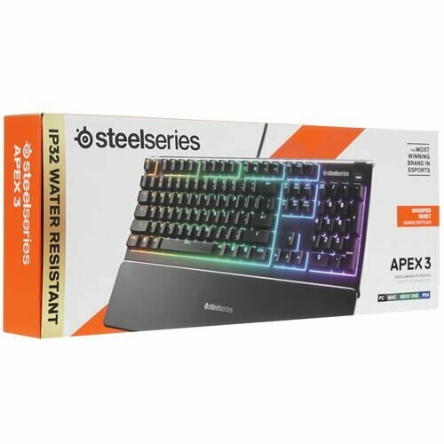 Игровая клавиатура SteelSeries Apex 3 RU Black USB SteelSeries Whisper-Quiet, черный