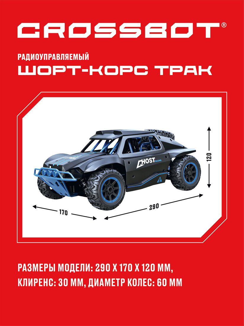 Шорт-корс радиоуправляемый Трак, аккумулятор, 4WD, 25 км/ч, синий Crossbot 870599 интересное: