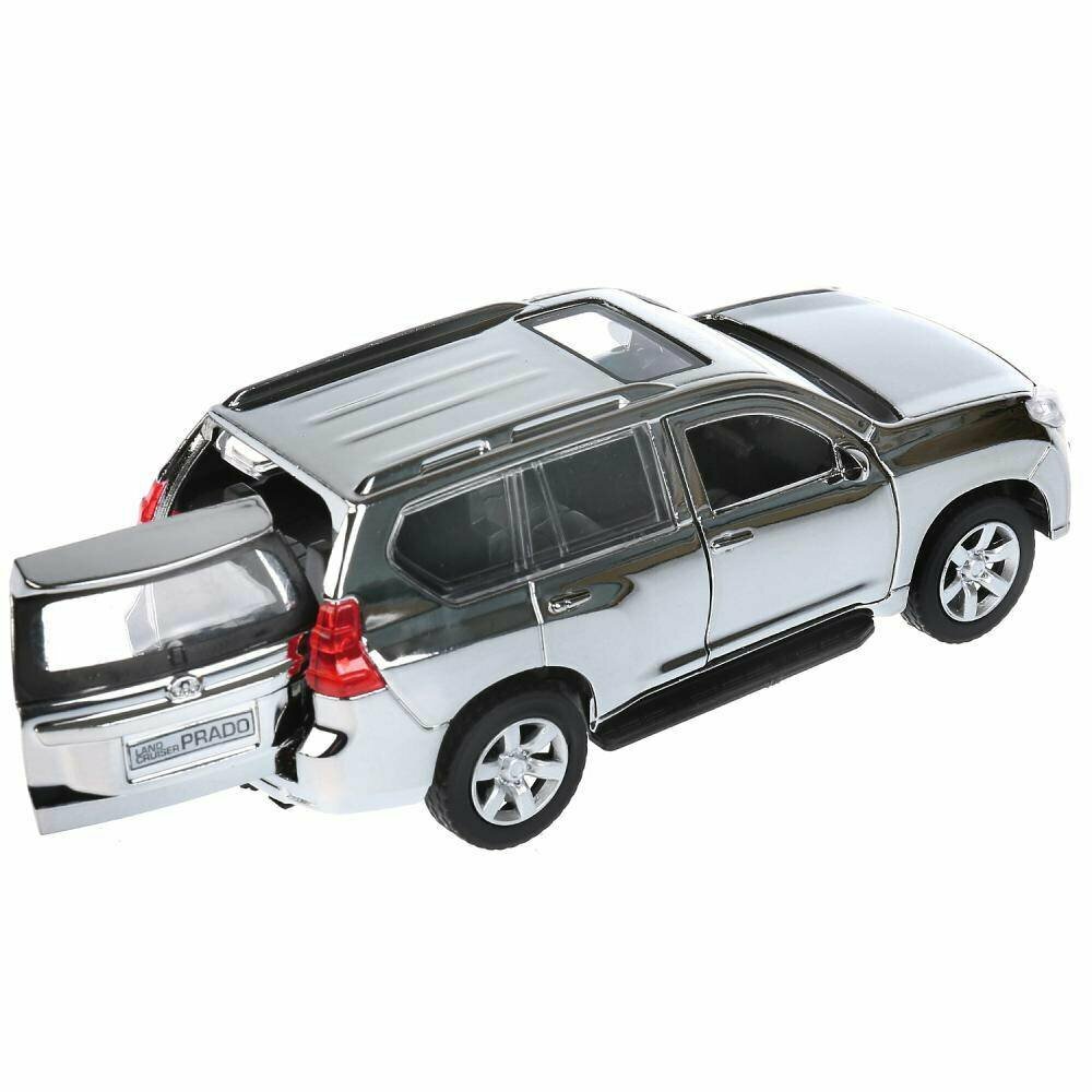 Машина металлическая Технопарк Toyota Prado хром серебристый, 12 см, открываются двери, инерционная