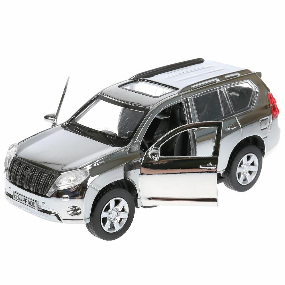 Машина металлическая Технопарк Toyota Prado хром серебристый, 12 см, открываются двери, инерционная