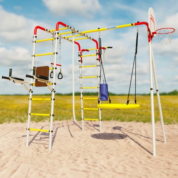 | В комплекте | баскетбольное кольцо, боксерская груша, канат, качели, лестница, рукоход, трапеция с кольцами, турник |