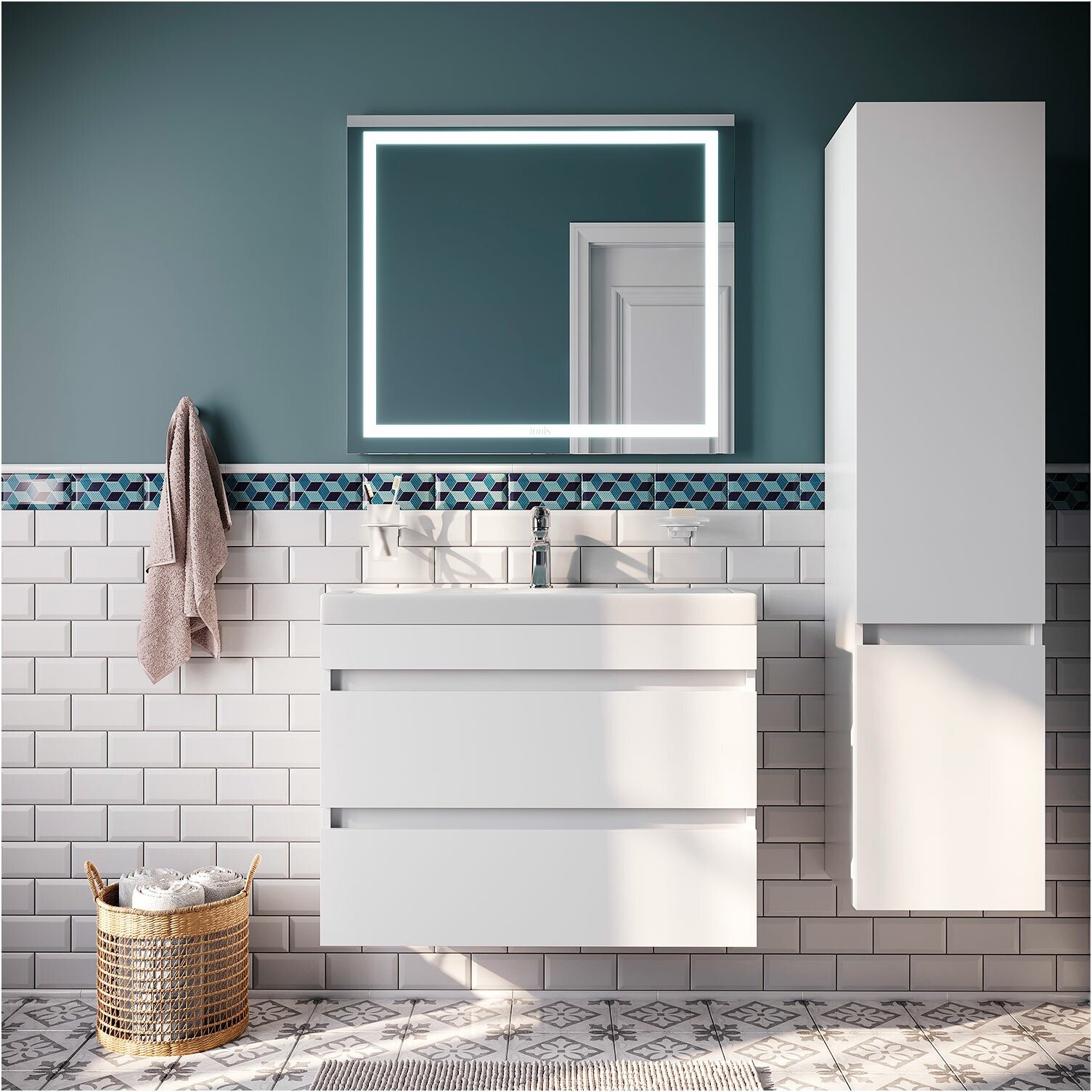Тумба с умывальником IDDIS подвесная с ящиками, белая, 80 см, Zodiac. Подходит ум. 3508000i28