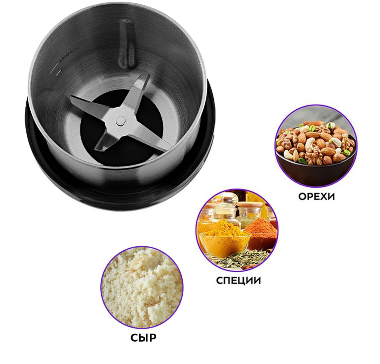 Измельчитель, кофемолка электрическая с емкостью.