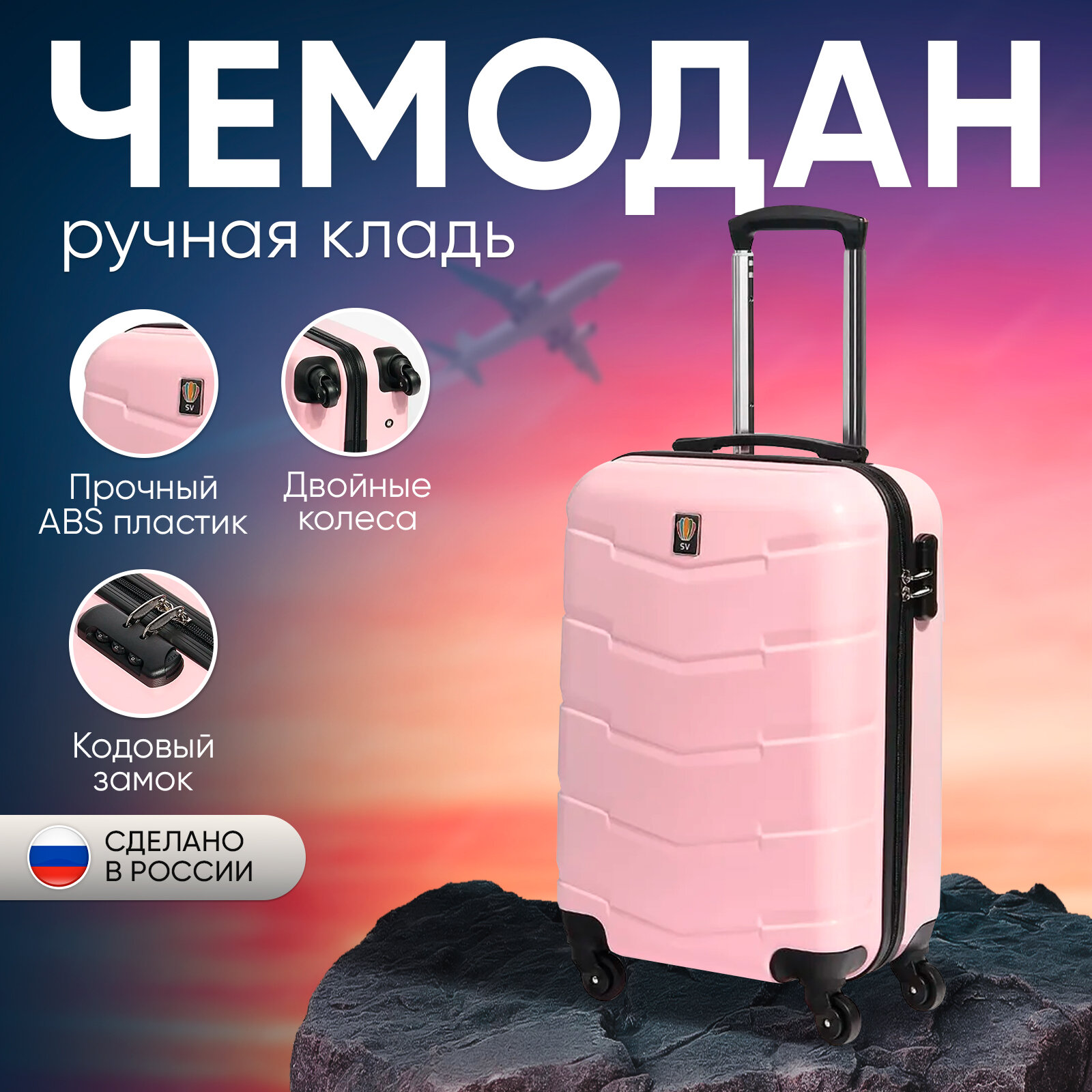 Купить Чемодан Sun Voyage на колесах, ручная кладь S, розовый