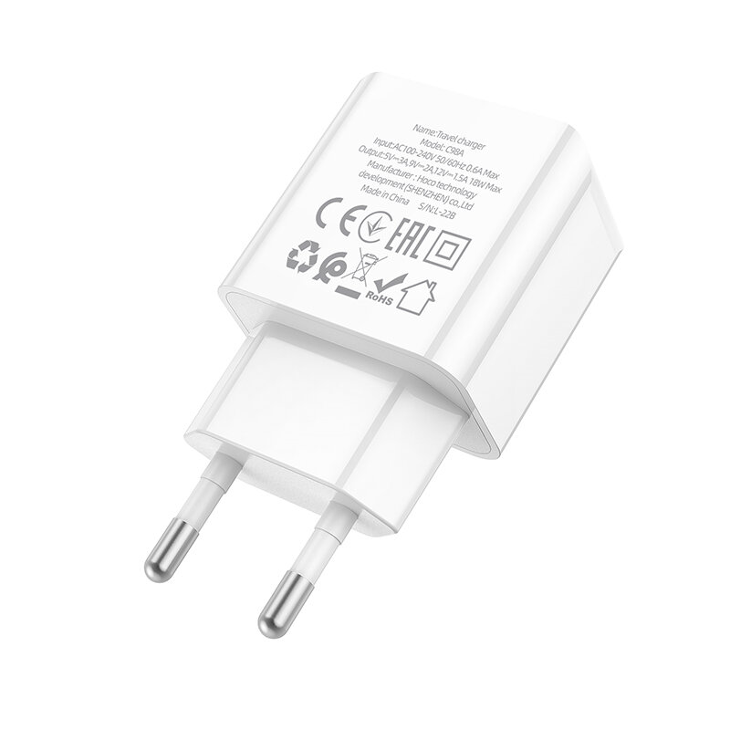 Купить Сетевой адаптер - Hoco C98A USB, 3A/18W, с быстрой зарядкой, белый, 1 шт.