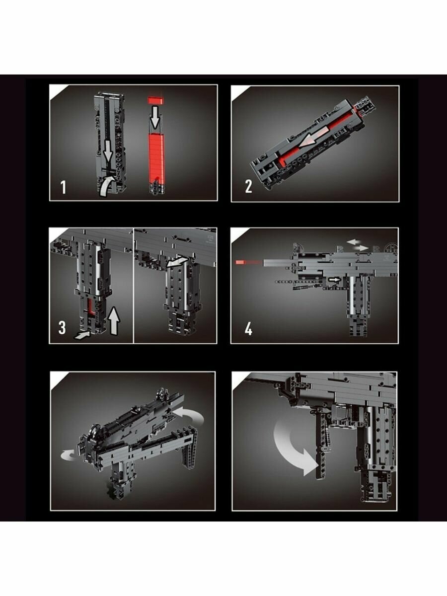 Конструктор Mould King 14006 Пистолет-пулемет Mini Uzi, модель механическая, Пластиковая, 796 дет., черный