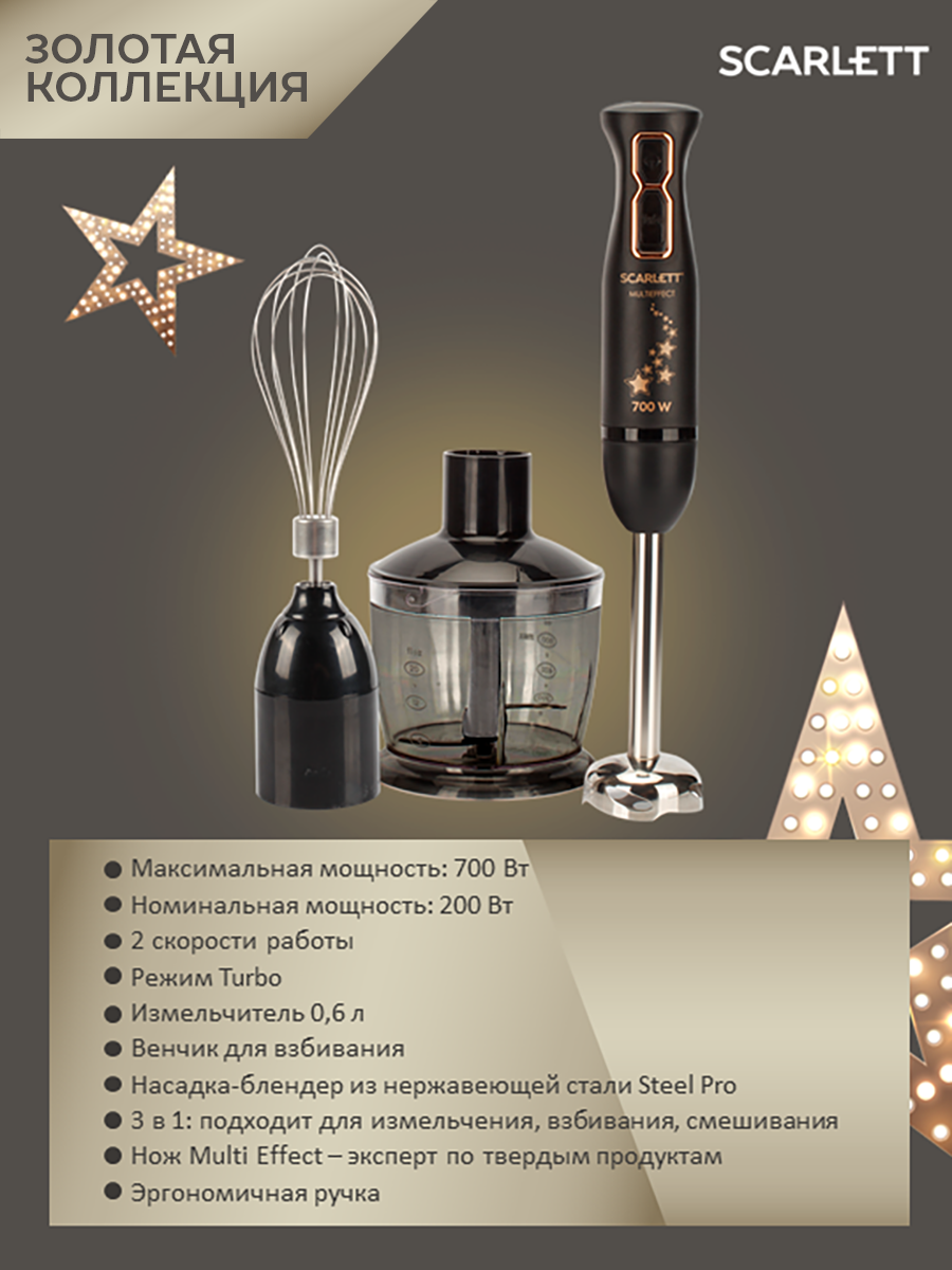 Блендер Scarlett Золотая коллекция SC-HB42F72, погружной, черный/золотистый