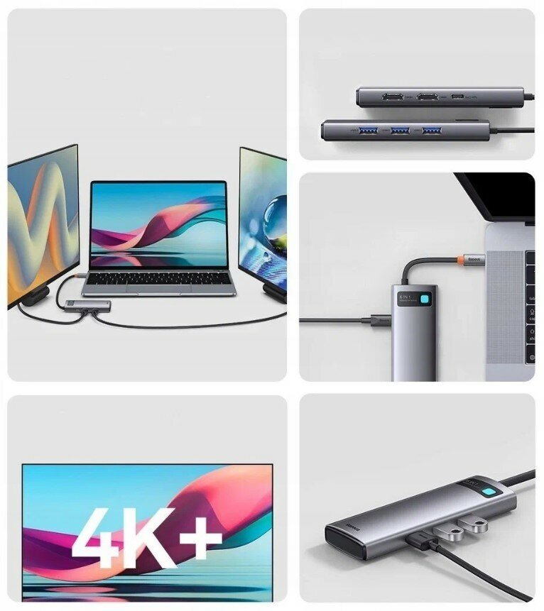 СохранитьХаб Baseus Metal Gleam Series 6-in-1 Multifunctional Type-C HUB Docking Station Gray (WKWG030113) интересное: