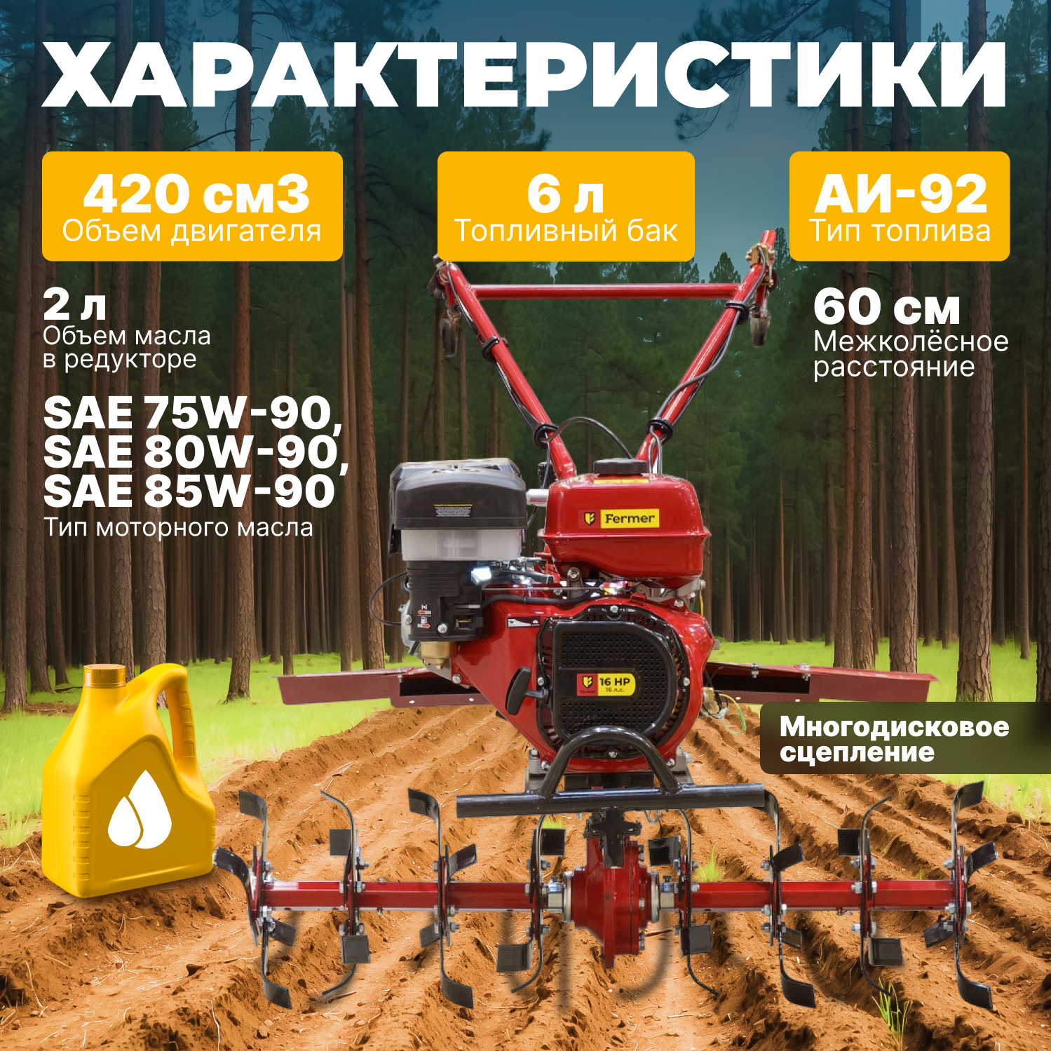 Культиватор бензиновый Fermer FM-1617MXL, колеса 6.50-12 интересное: