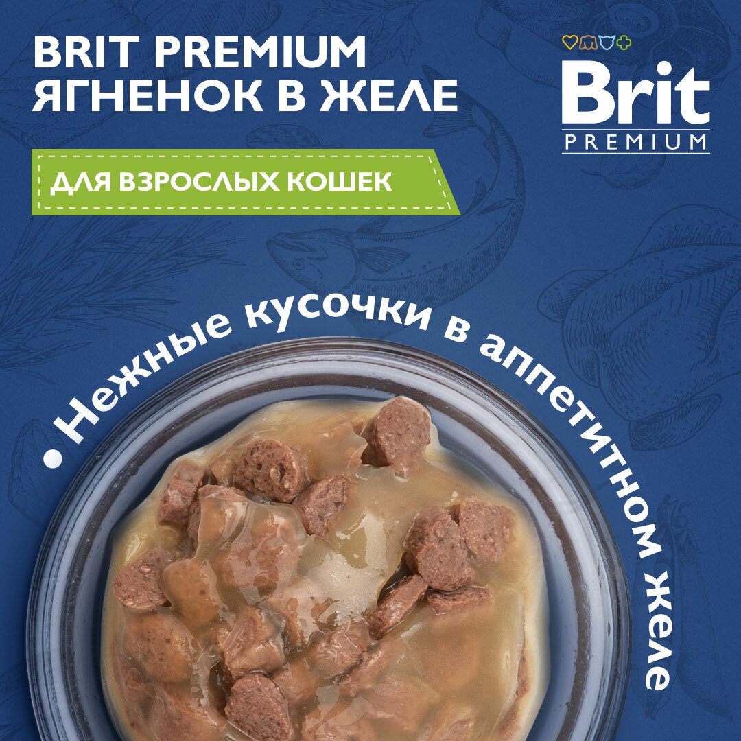 Купить Корм Brit Premium Lamb (в желе) для кошек, с ягненком, 85 г x 14 шт