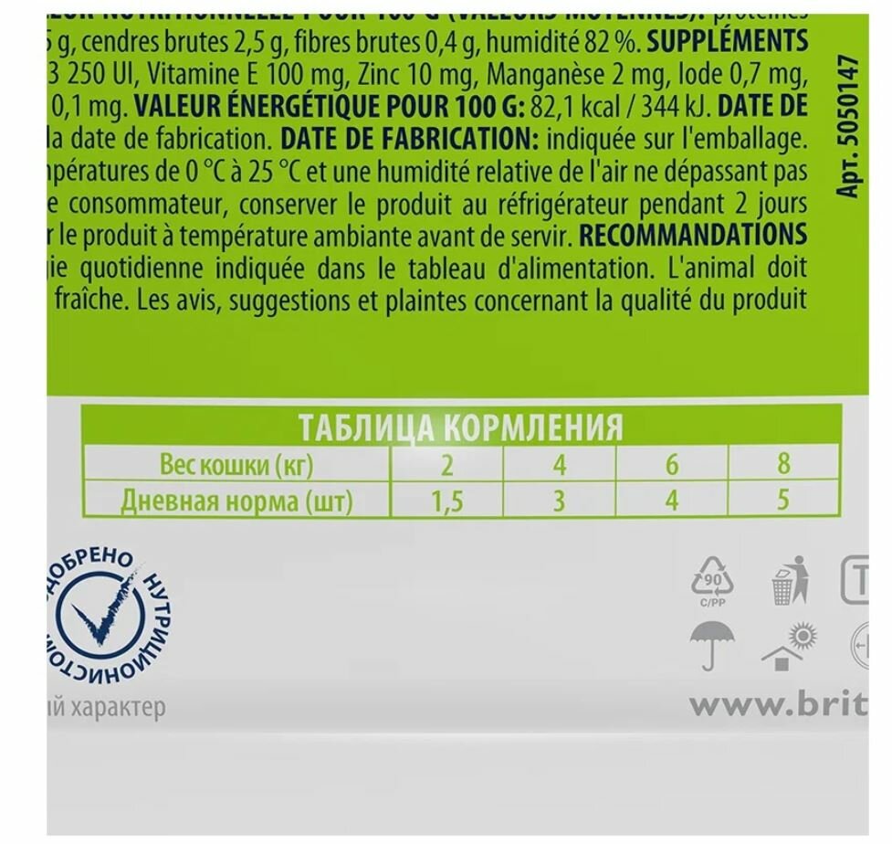 | Пищевая ценность | сырой протеин 9,2 г, сырой жир 4,5 г, сырая зола 2,5 г, сырая клетчатка 0,4 г, влага 82 % |