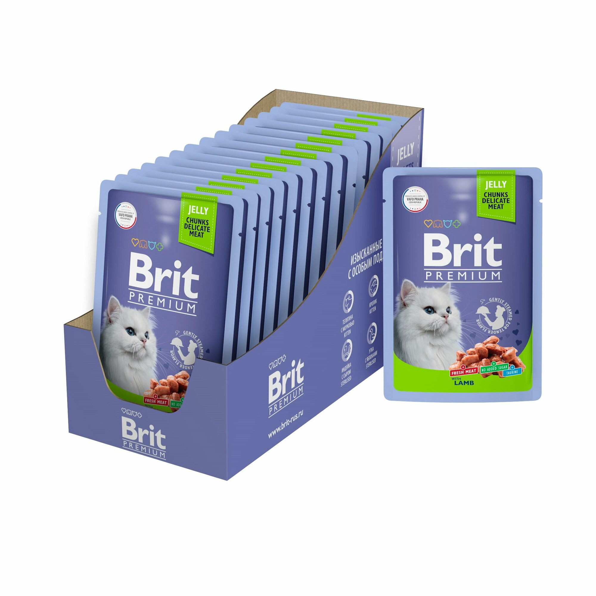 Паучи для взрослых кошек Brit Premium, ягненок в желе, 14 шт. х 85 г