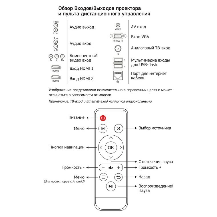 | Дополнительная информация | комплектация: кабель HDMI 1.5м, 3,5 мм кабель AV, кабель питания, пульт ду, салфетка из микрофибры, руководство пользователя; возможность по установке: фронтальная проекция, обратная проекция, крепление к потолку |