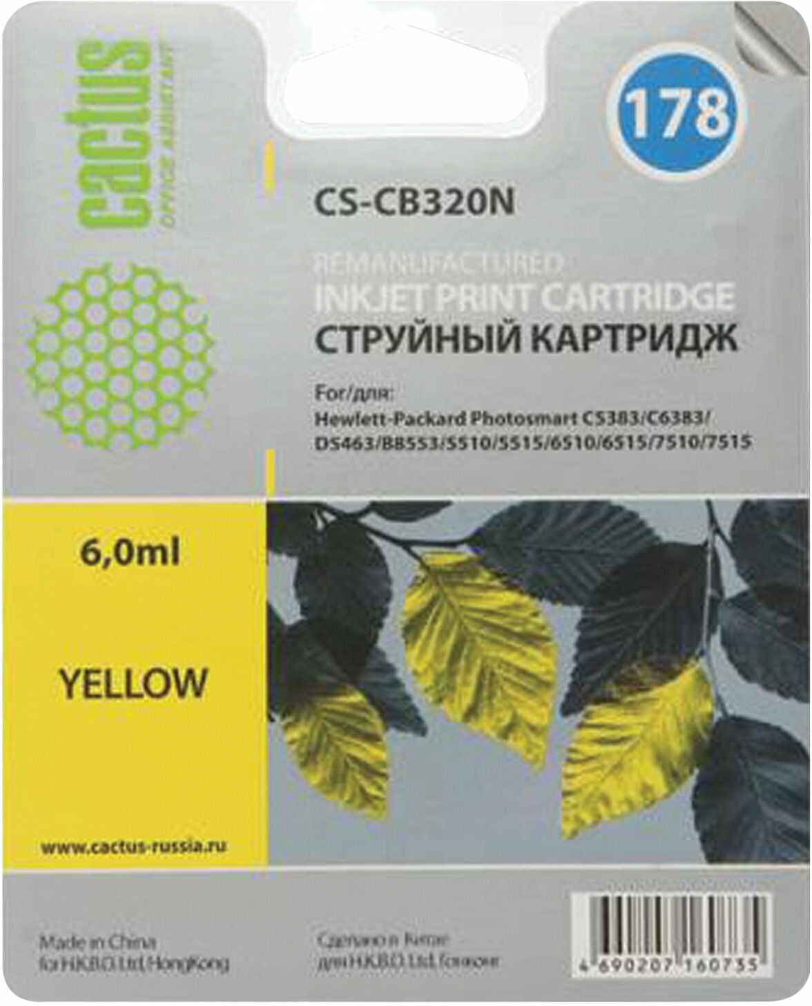 Картридж CACTUS CS-CB320N(CS-CB320), №178, желтый / CS-CB320N(CS-CB320)