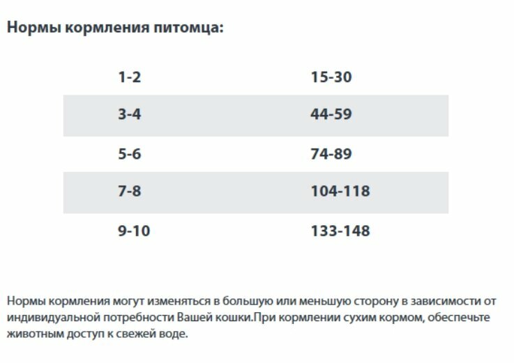 | Дозировка | 1-2 кг/15-30 г, 3-4 кг/44-59 г, 5-6 кг/74-89 г, 7-8 кг/104-118 г, 9-10 кг/133-148 г |