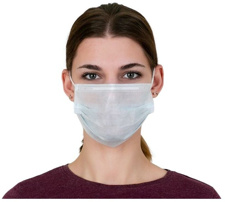 Маска медицинская трехслойная голубая, 50шт