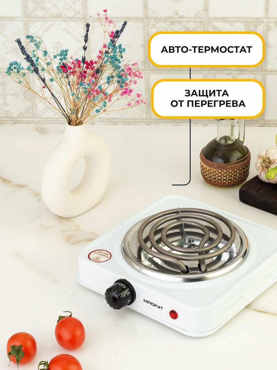 Плитка электрическая MAGNIT EH-1010, 1 конф. белая, ТЭН спираль