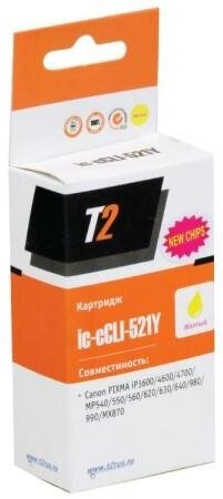 Купить T2 Расходные материалы CLI-521Y Картридж IC-CCLI-521Y для PIXMA iP3600 4600 MP540 620 630 980, желтый, с чипом