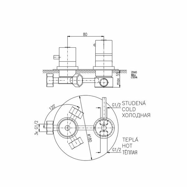 Rav Slezak Dunaj Termostat Смеситель термостатический для душа монтирующийся в стену с переключателем цвет хром (DT387)