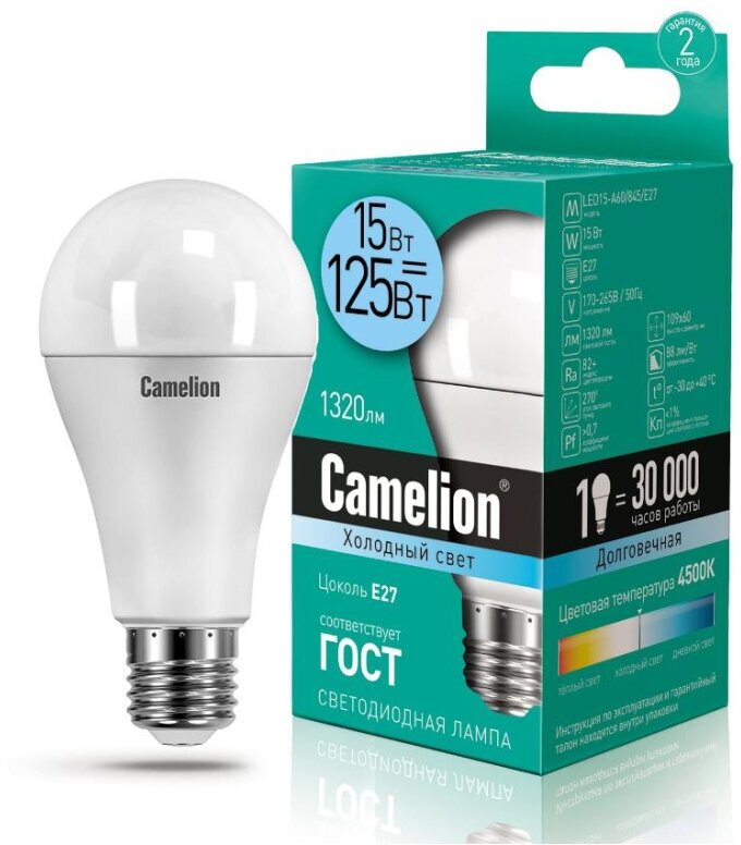 Лампа светодиодная Camelion LED15-A60/845/E27 15 Вт 4100К E27 интересное: