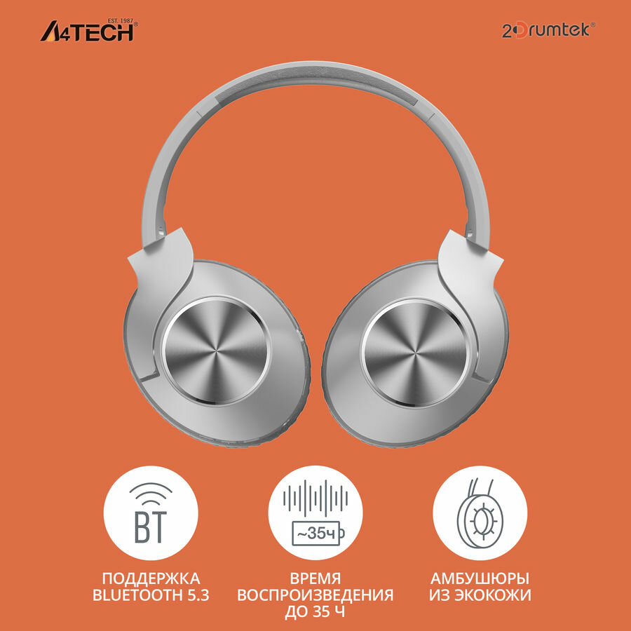 Наушники накладные A4Tech 2Drumtek BH300 черный беспроводные bluetooth оголовье (BH300 ASH Grey) BH3 .