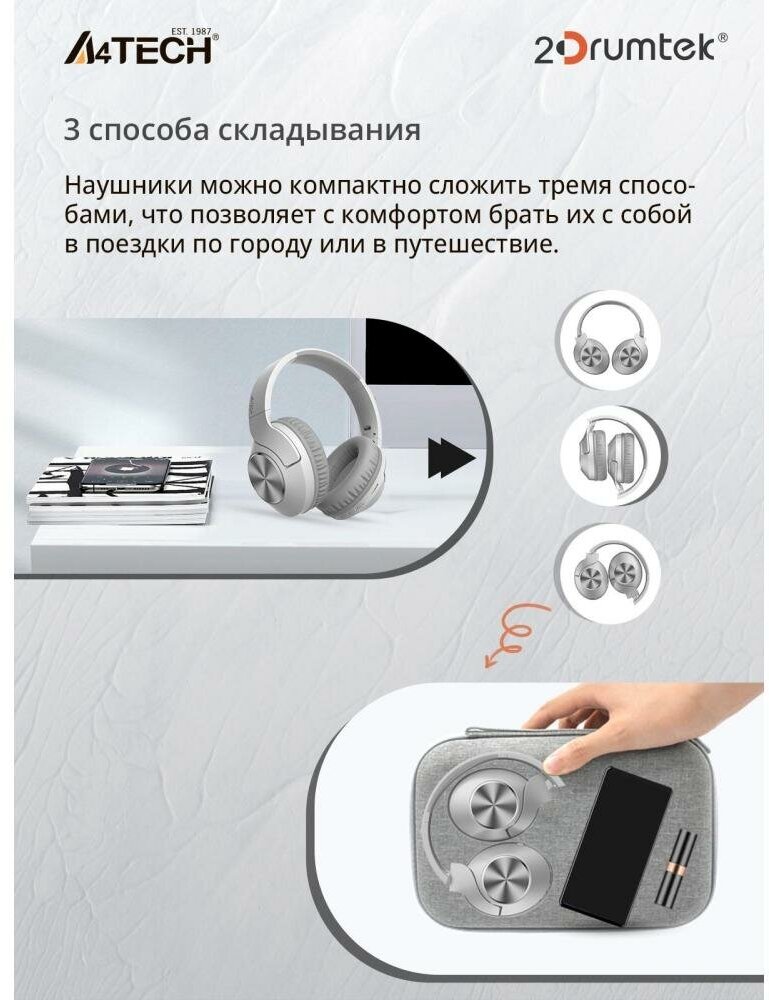 СохранитьНаушники A4Tech 2Drumtek BH300 беспроводные, с микрофоном, Bluetooth, бело-серый интересное: