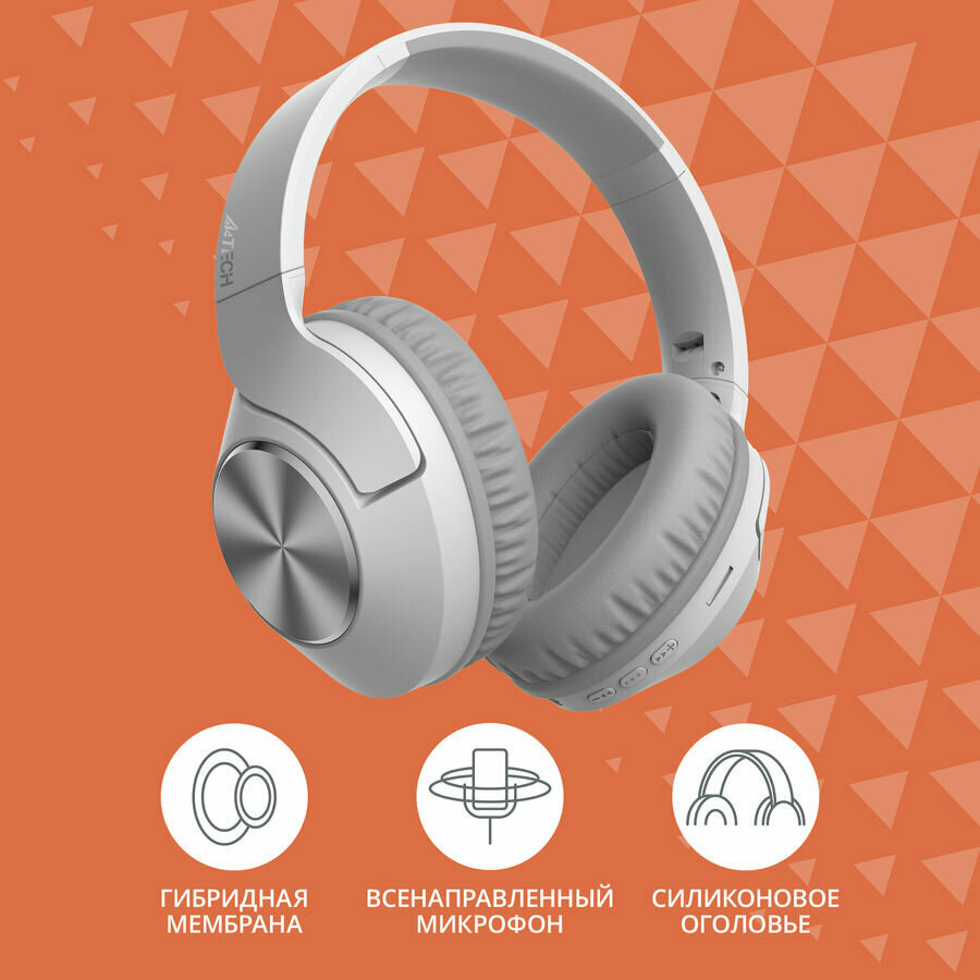 Наушники Bluetooth A4TECH BH300, белые/серые, складные