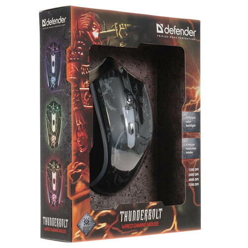 Мышь Defender Thunderbolt GM-925 4 кнопки,1200-7200dpi,радужная проводная игровая