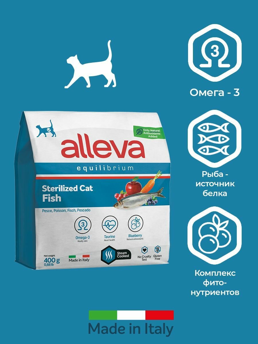 ALLEVA EQUILIBRIUM CAT для кошек Sterilized Fish / кастрированных котов и стерилизованных кошек с рыбой 0,4 кг 1080 новинка,