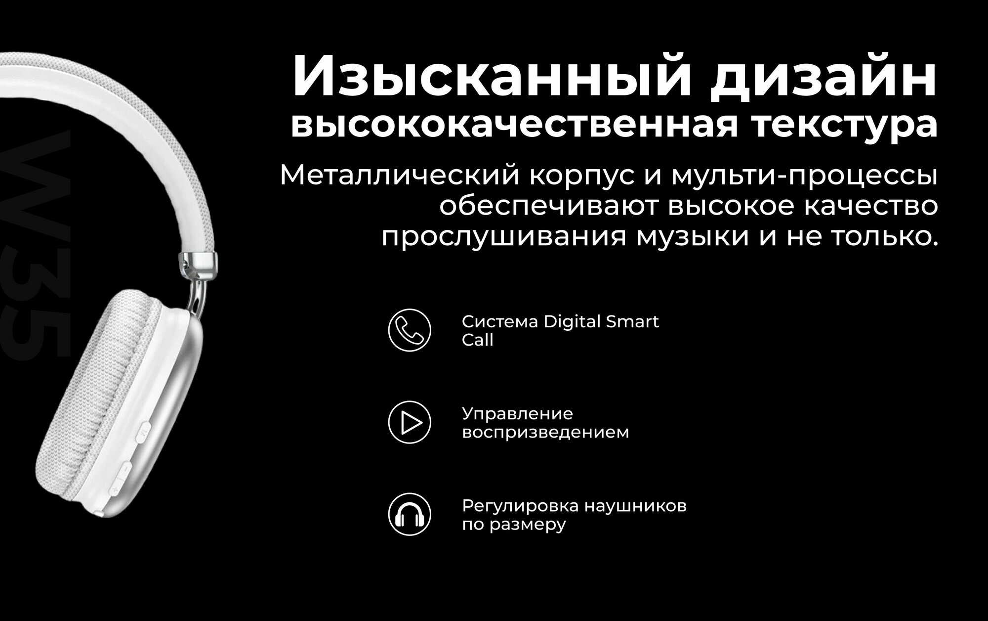 Наушники беспроводные большие Hoco W35 с микрофоном, полноразмерные, накладные, micro SD слот, Bluetooth 5.3