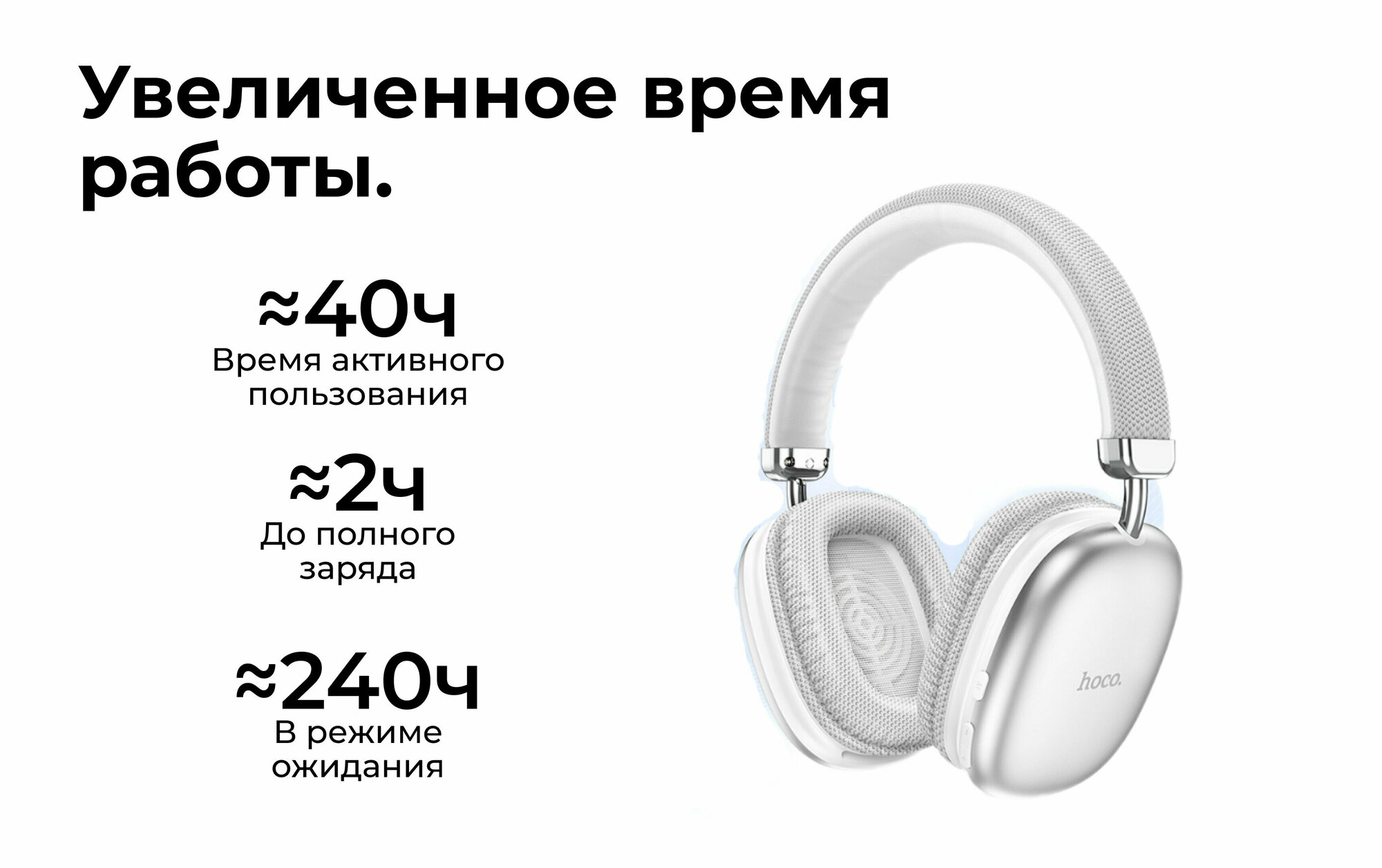 Наушники полноразмерные беспроводные Hoco W35 BT 5.3, 40 часов музыки, цвет Серебристый