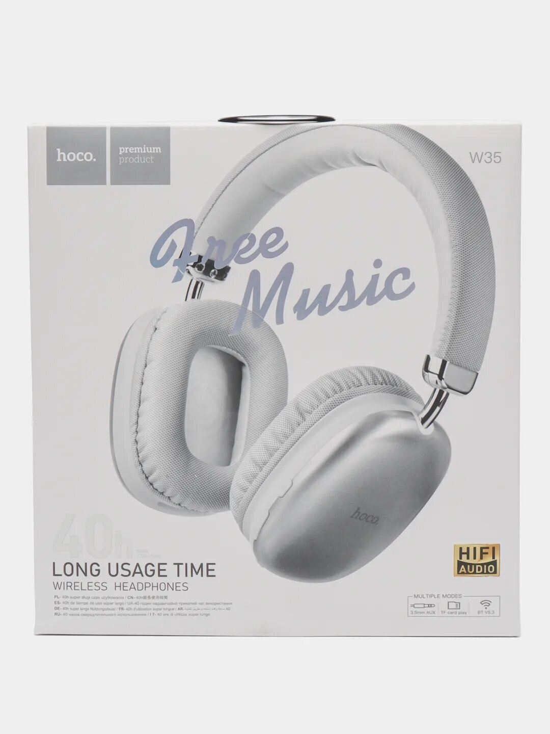 Купить Беспроводные накладные наушники Hoco W35, Bluetooth 5.3, 40 часов работы, AUX, TF, Серебристый