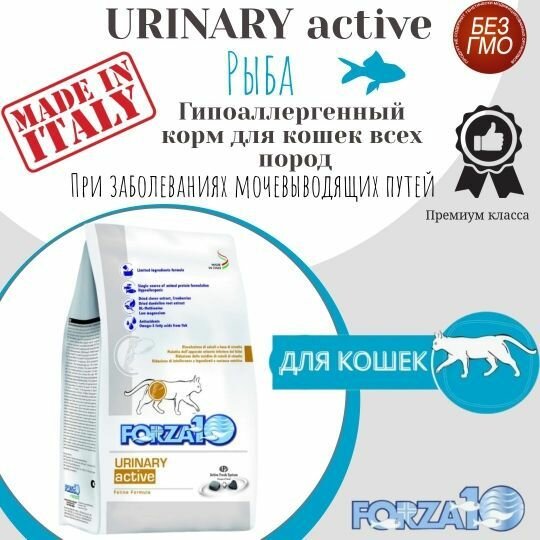 Гипоаллергенный сухой корм для кошек Forza 10 Cat Urinary Active при патологиях мочевыводящих путей /рыба /1,5кг
